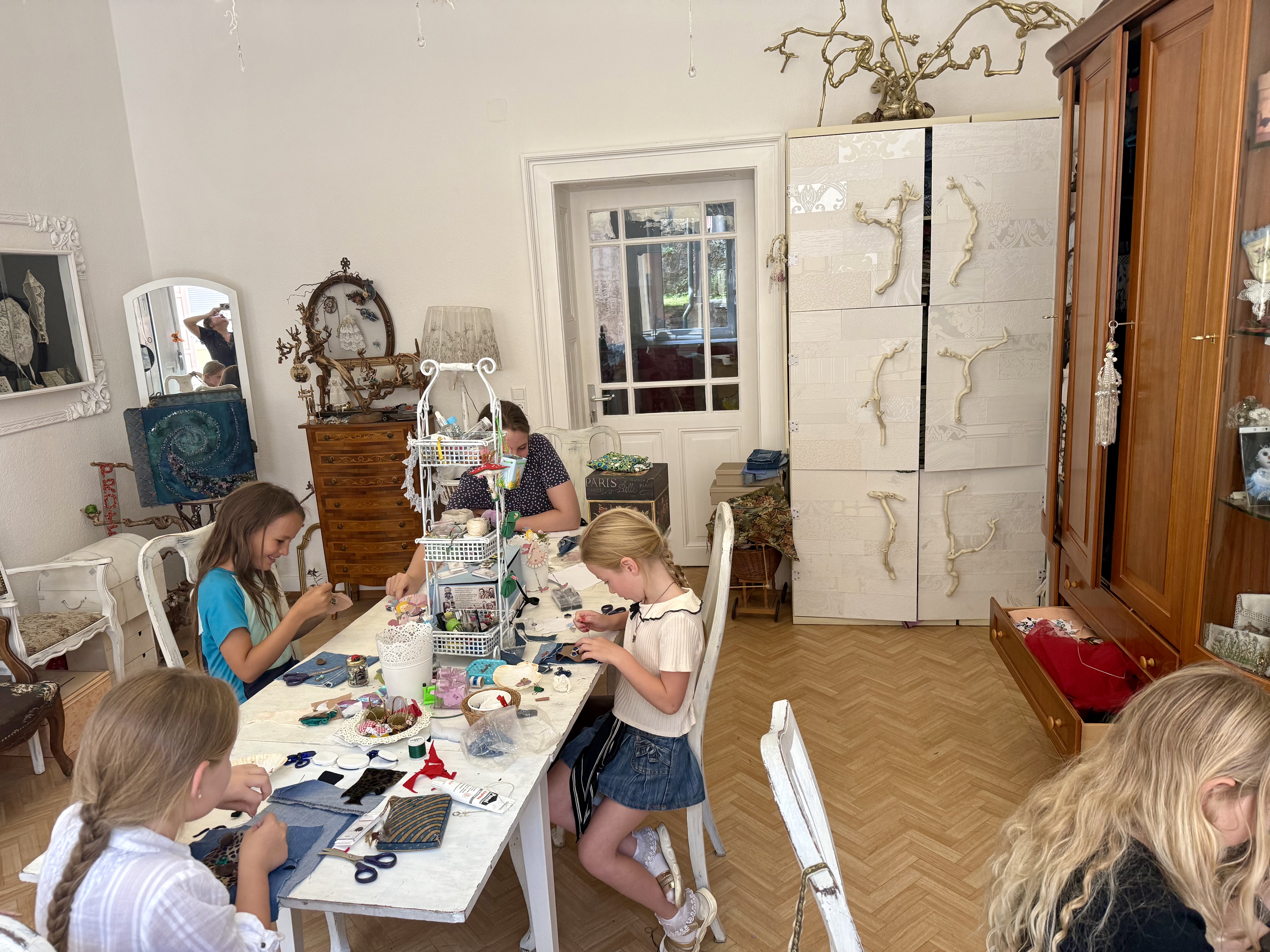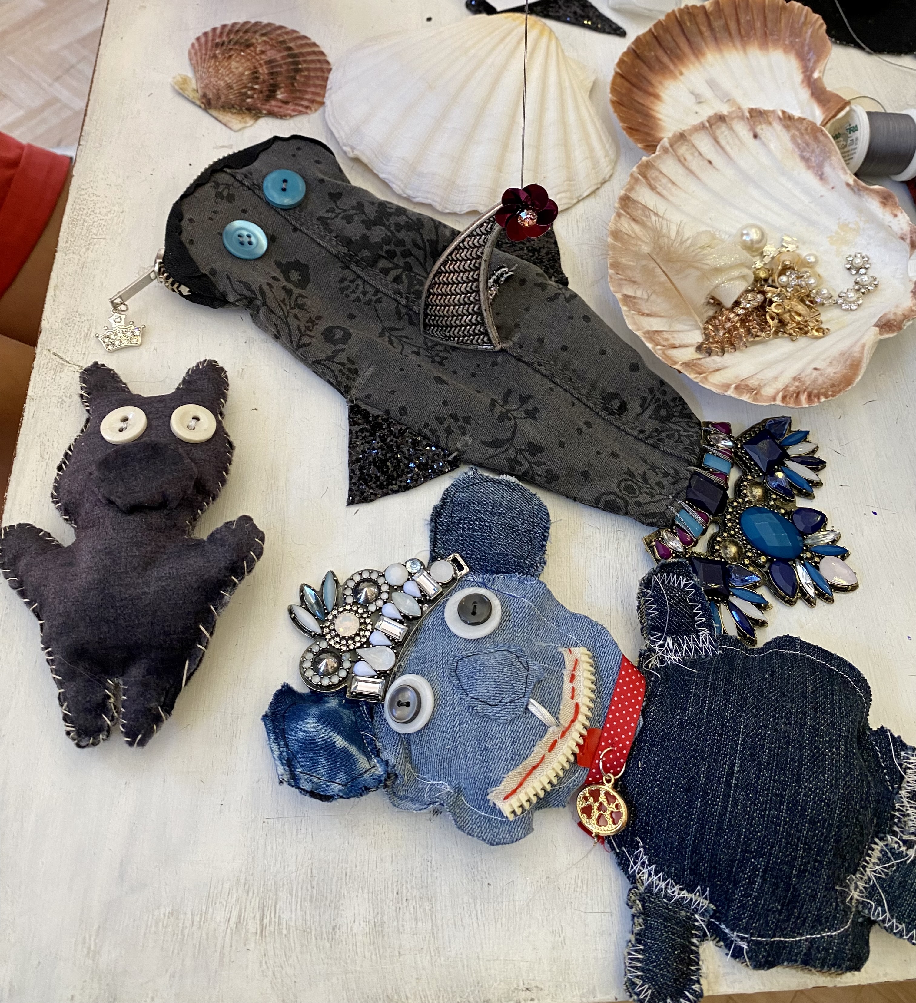 Im STUDIO für KREATIVE wird man ermuntert eigene, fantasievolle Dinge zu gestalten, wie Jeanstaschen, kleine Bärchen, süße Monster oder Engel und was das Herz so begehrt. Auch viele Muster zum Nachmachen und außergewöhnliche Materialien, wie verschiedene Stoffreste, Perlen, Glitzersteinchen, Bänder und vieles mehr, werden zur Verfügung gestellt. Jede Gruppe und jedes Kind kann selbst entscheiden, was im Kurs gemacht wird und eigene Ideen vorstellen. Unterstützt wird mit der Auswahl an Materialien und bei den handwerklich kniffligen Einsätzen, die Hilfe bedürfen. Angesteckt durch die Leidenschaft zur textilen Kunst, kreieren die Kinder mit viel Motivation, Begeisterung und Geduld eigene kleine Werke. Dabei gibt es kaum eine technische Herausforderung oder Frage, die nicht kreativ und professionell gelöst werden kann.